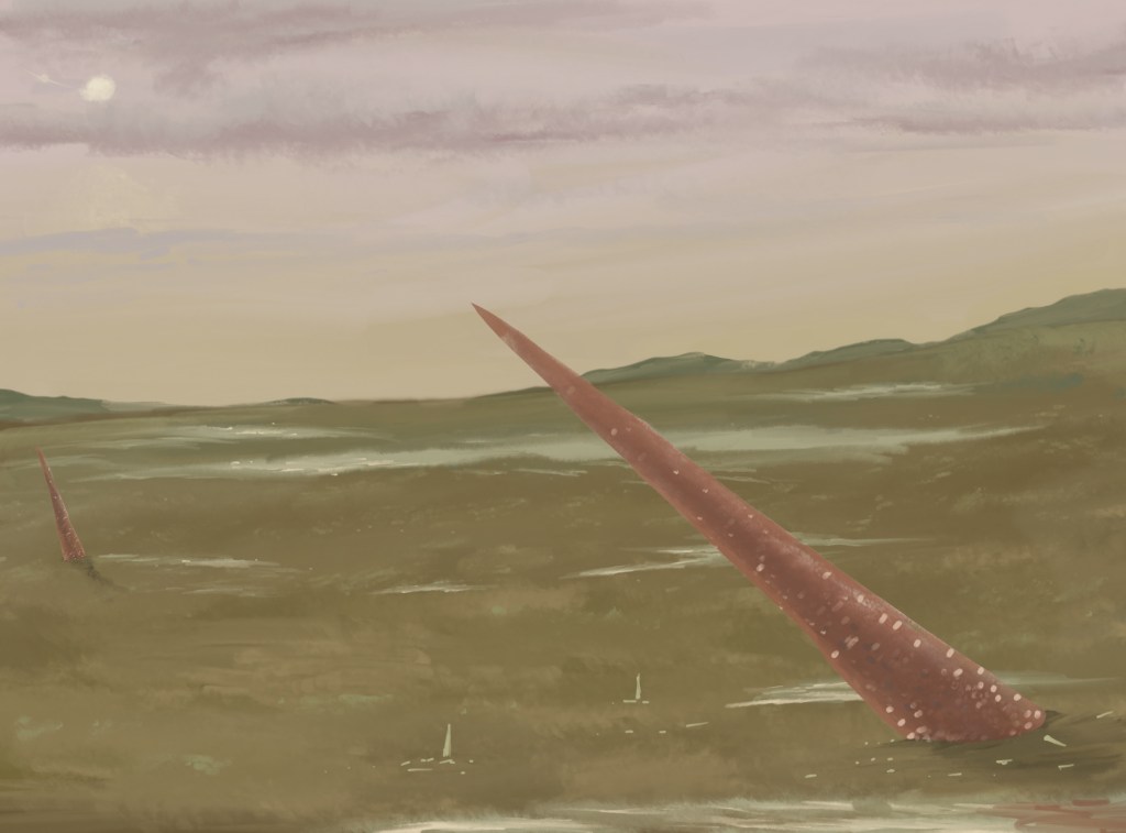En el planeta gélido de la glaciación, la vida marina quedó diezmada y reducida a su mínima expresión. Buena parte del agua que hay en La Tierra se quedó atrapada en forma de nieve y hielo sobre los continentes, lo cual hizo que bajase el nivel del mar. Se estima que el mar descendió unos cien metros en apenas unos siglos, dejando al descubierto la Caliza Urbana. Tras este primer embate del frío, el océano regresó tímidamente a nuestra zona, y con él los icebergs que crearon la diamictita. Sobre esta roca hallamos más señales de ese mar agonizante, en una gruesa sucesión de pizarras que en la región reciben el nombre de »Pizarras Chavera». En ellas la exuberancia de fósiles de la Caliza Urbana desaparece por completo, y solo se nos muestran algunas huellas fosilizadas de animales marinos. Son invariablemente escasas y muy pequeñas, testimonio de una vida empobrecida y enanizada por el frío. El fósil más corriente, Allocotichnus palmatus, parece una ínfima roseta de arañazos. Tal vez la hizo algún trilobites u otro animal similar que lograse sobrevivir durante la catástrofe. Pero a pesar de los desastres, como decía Ian Malcom en el Parque Jurásico, la vida se abre camino.